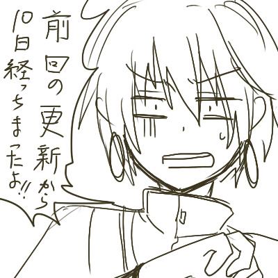 ドヤァ…… 気付いたらドヤ顔してたゼノ氏 最近落書きがゼノ続きです。 正直苦手なタイプの容姿なので練習してるだなんて言えない(*ノノ) そして九月は死んでました。 期限もやっぱり守れずOTZ 10月もなんだか死にそうです(笑) 日記くらい毎日書こうかなーと最近思っております。 でも日付変わらなきゃ帰ってこれない時は無謀かなとも思ってます(^p^) もっと創作したいです。 というか、もっと創作活動しよう、うん、そうしよう。 [2回]PR 気付けば10月です 気付けば10月ですね。 一週間が早すぎます;; 七日間連勤とかしてると家=寝る場所、みたいな方程式が体に刷り込まれてしまいそうです。 ちょっと一日休みの日が入ると酒ばっかり飲んでしまって更新が止まってしまうだなんて言えませんね!(お前……) 今週は早く帰れるかなぁ……と淡い期待を抱きつつ。 童師もちょこちょこ描いてかないと、ビブリオはせめて一話までは進めないと……。 描きたくてうずうずしてます(笑) 拍手、御来訪有難うございます♪ 亀更新ですみません;; 頑張ります(^o^) [2回] しまったぁ・・・・・・OTZ 前回のサイト更新からまるまる10日過ぎてました……週一更新したかったのに……oh 近日中に更新できるよう頑張ります;; というかもう、何なの飲食って(笑) 友人たちも平均15時間労働ですし、かなりアグレッシブ&ハードです^^; 私はまだ暇とゆとりがかなりある職場だから良かったのですが、その分休みがナッシングです。。 いやいや言ってる場合じゃない。働け&もっと描け。 頑張ります(^p^)b [2回] なんとなく 全然イラストとかと関係ないのですが、夕飯を食べながらチベットの鳥葬の画像を漁ってました。 実にお肉でした。 なんだか食欲が無くなりました(笑) うつぶせに寝かすことにそんな理由があったとは……と、驚かされました。 ええ、実に関係のない話です。。 漫画もぼちぼち進めてます。 暫くはビブリオを攻めようと思います。 アクィラが全く出てきてないですし、あらすじのような展開がまだ露とも見て取れません^^; 小悪魔っ子にしたいです。純粋さがゲスい感じの(笑) さて、明日も仕事頑張ろう! ブログ拍手有難うございました! 嬉しいです(*^^*) [3回] 子ども組 ……とか言いつつイナンダ居なくてごめんよ的な落書きです^^; ゼノとミカドとイナンダの子ども組がプロローグなんですが、子供描くの苦手すぎます;; イナンダはともかく(またそうやって…)、ゼノとミカドは観賞用として売り飛ばせるような容姿を目指して描いてます。 それにしてもゼノの頭のアンテナは何なんだろう……妖気でも感じてるんだろうか。 [3回]